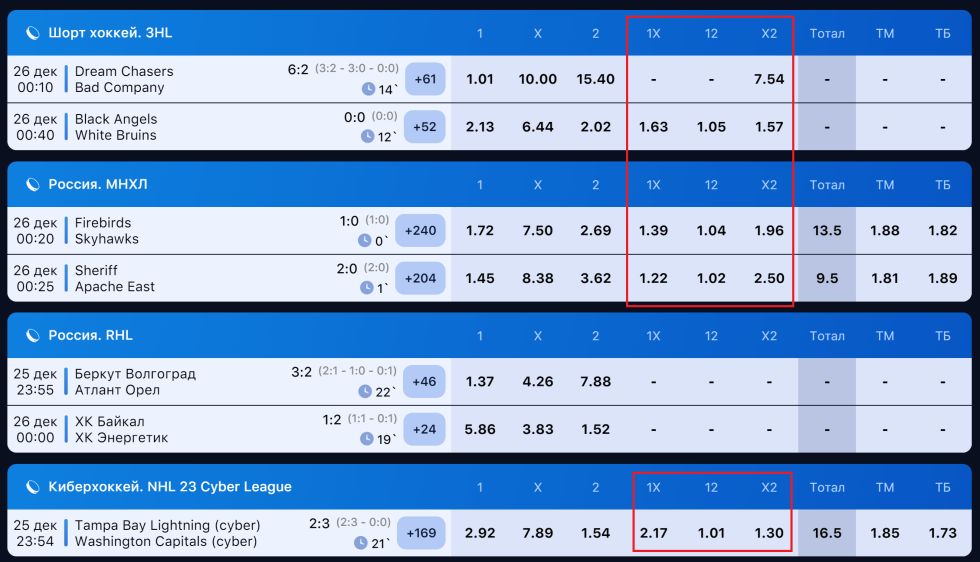 Таким образом, "двойной шанс" дает более высокие шансы на выигрыш, но взамен коэффициенты на такие ставки обычно ниже, чем на стандартные ставки на победу одной из команд.