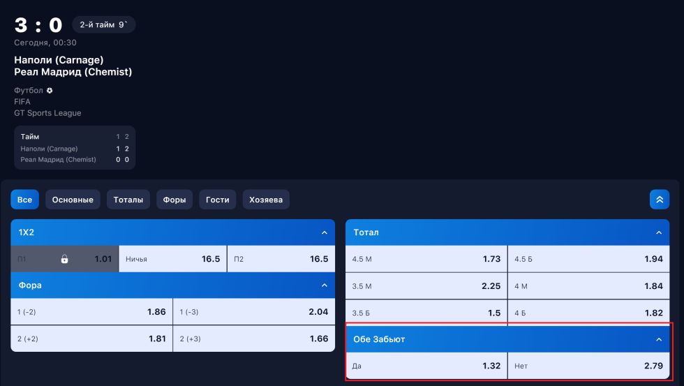 Для примера, если вы ставите на "обе забьют" в матче между командами А и Б, и итоговый счет становится 1-1, 2-1, 2-2 и т.д., то ваша ставка выигрывает, так как обе команды забили. Если же счет становится 0-0, 1-0, 0-1, 2-0 и т.д., то ваша ставка проигрывает, так как хоть одна команда не забила.