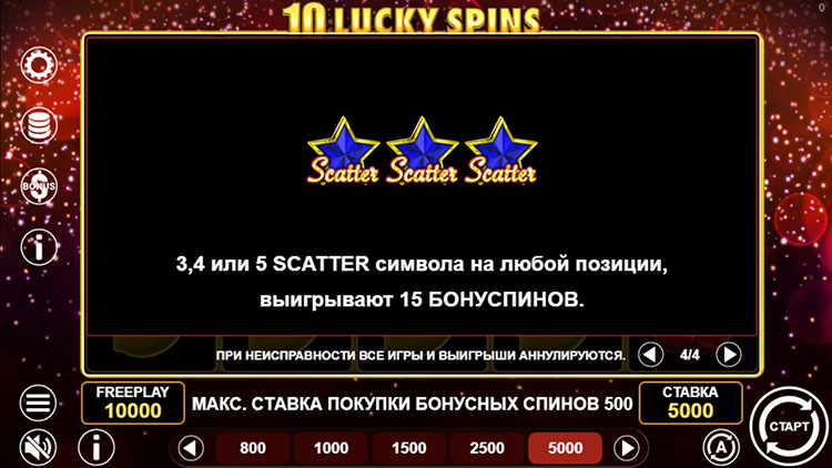 | Звезда (Scatter) | 10 000 | 50 000 | 250 000 |