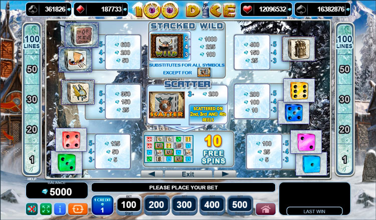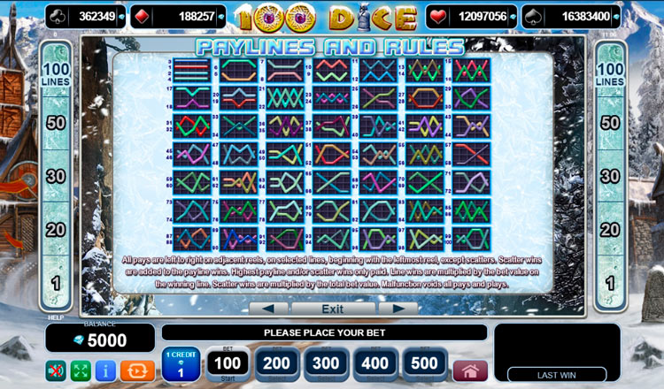 Таблица выплат 100 Dice