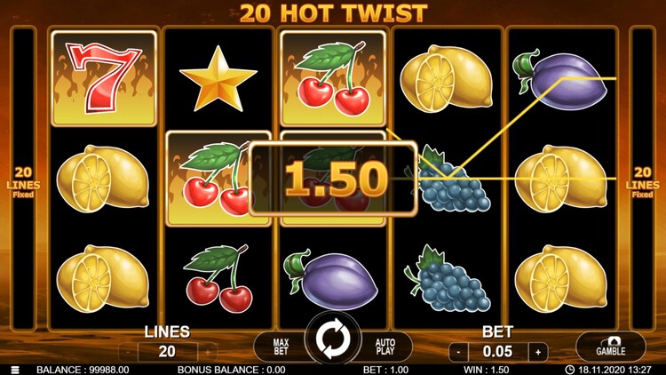 Таблица выплат 20 Hot Twist