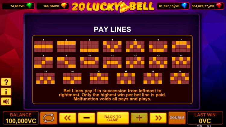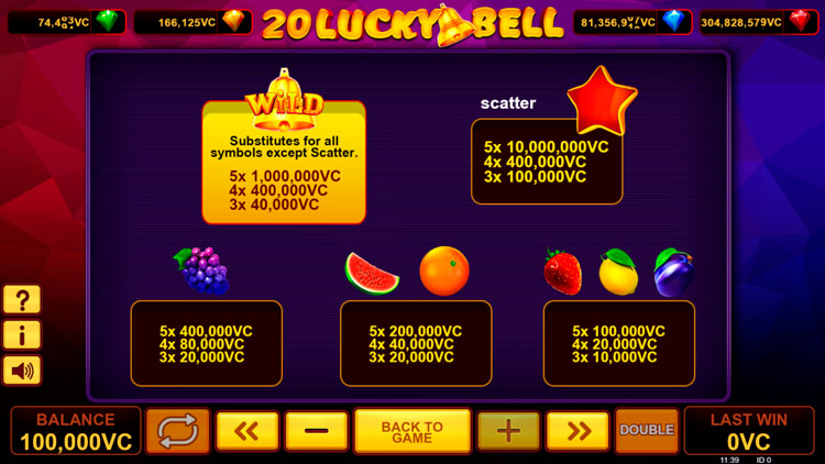 Таблица выплат 20 Lucky Bell