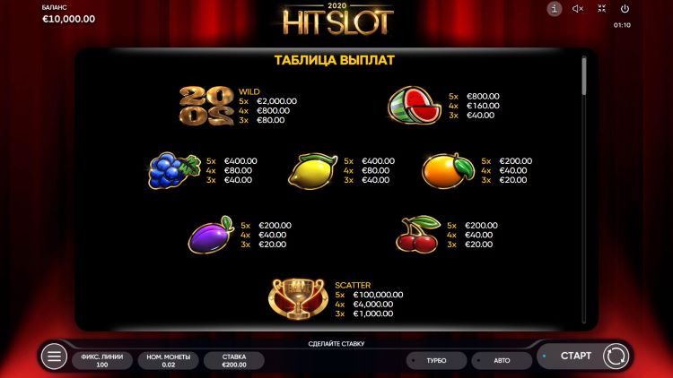 Таблица выплат 2020 Hit Slot