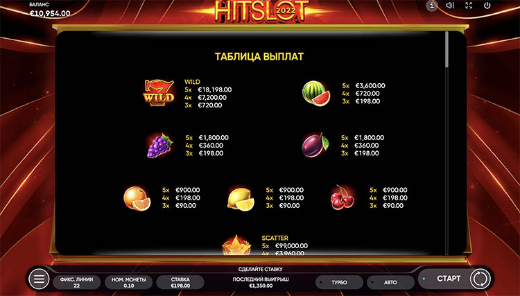 Таблица выплат 2022 Hit Slot
