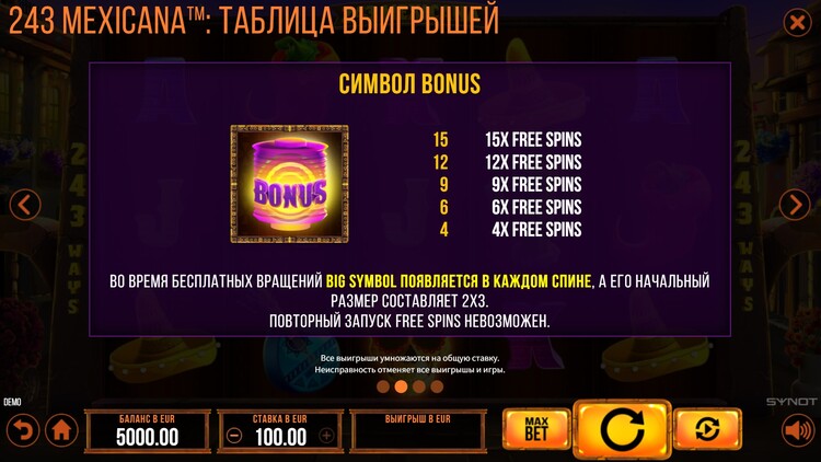 Таблица выплат 243 Mexicana