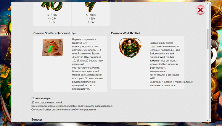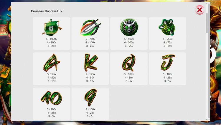 Таблица выплат 3 Kingdom: Shu