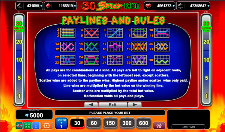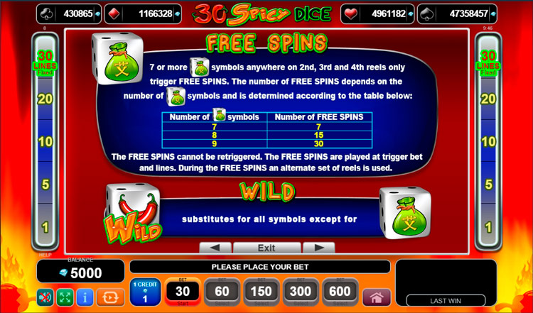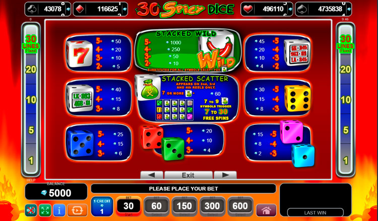Таблица выплат 30 Spicy Dice