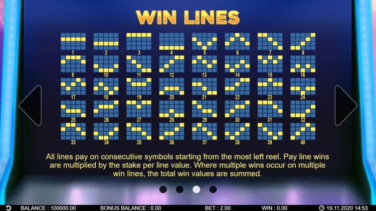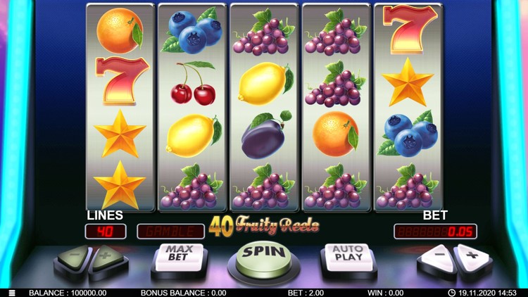 Таблица выплат 40 Fruity Reels