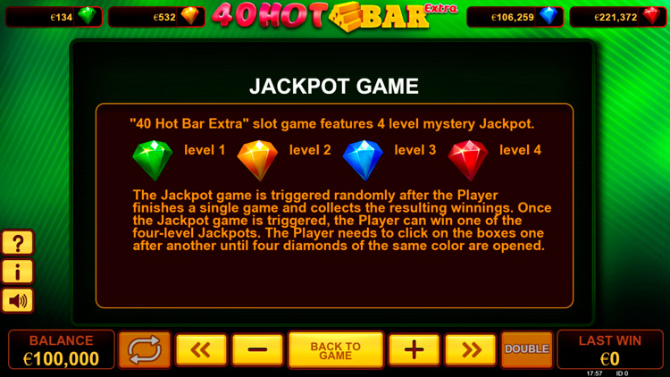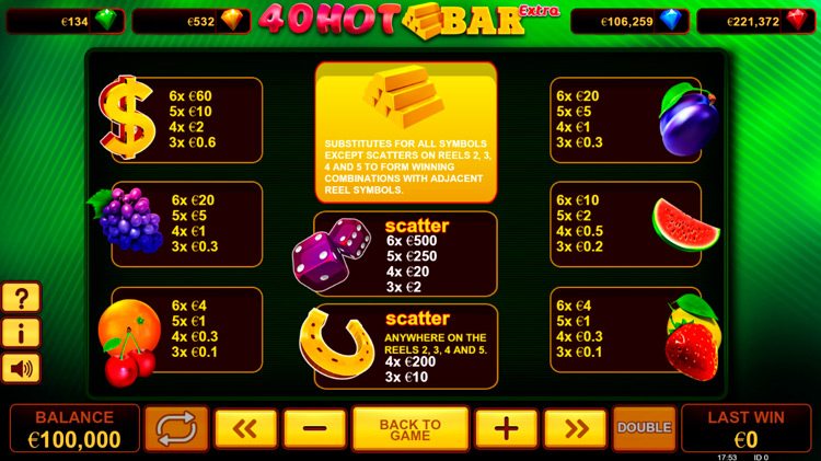 Таблица выплат 40 Hot Bar Extra