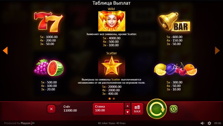 Таблица выплат 40 Joker Staxx