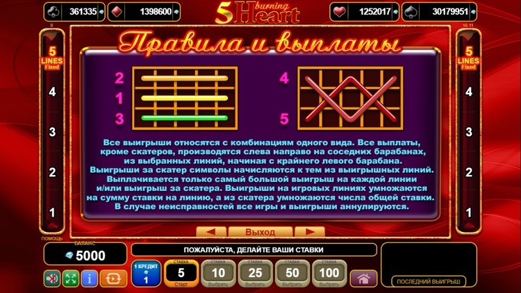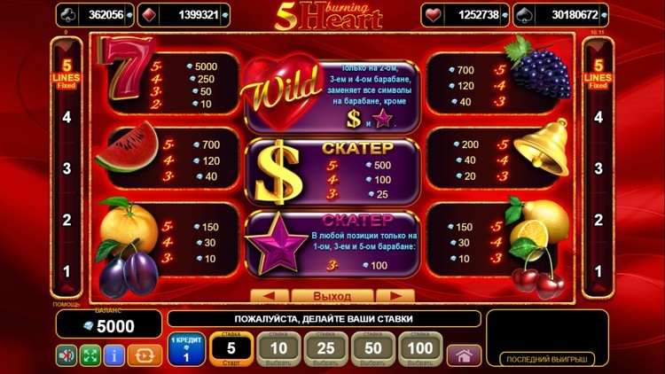 | Знак доллара (Wild) | - | 25 | 100 | 500 |
