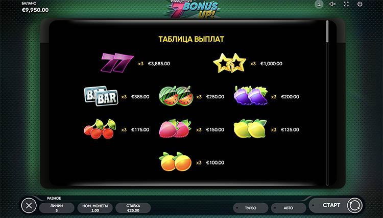 Таблица выплат 7 Bonus Up!