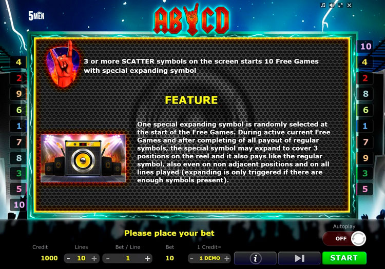 | Жест рок (Scatter) | - | 20 | 2 000 | 20 000 |