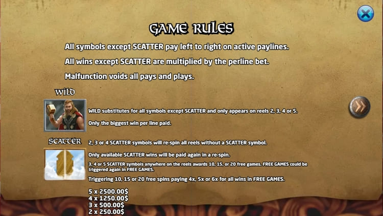 | Ворота в Вальгаллу (Scatter) | 250 | 500 | 1 250 | 2 500 |