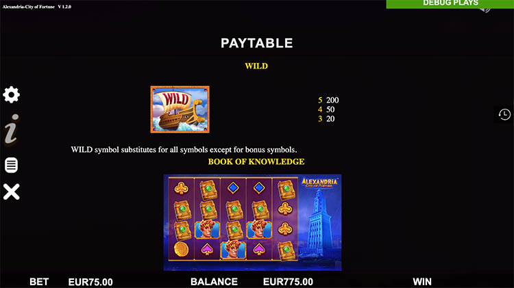 Таблица выплат Alexandria City Of Fortune
