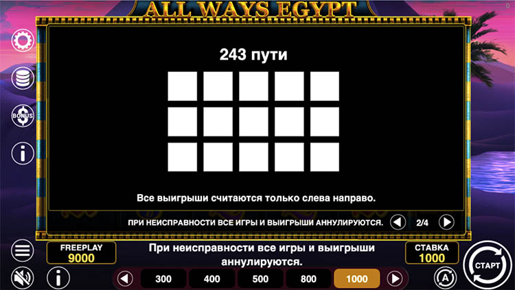 Таблица выплат All Ways Egypt