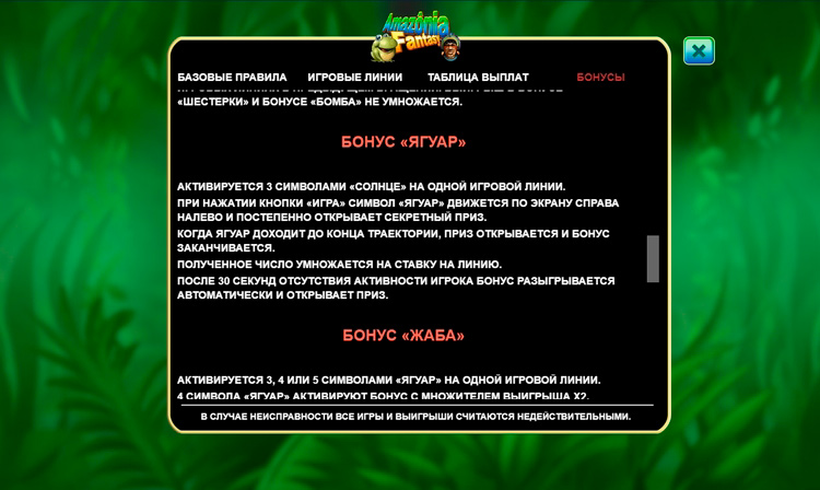 Таблица выплат Amazonia Fantasy