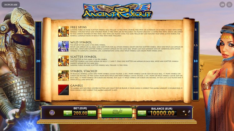 Таблица выплат Ancient Secret