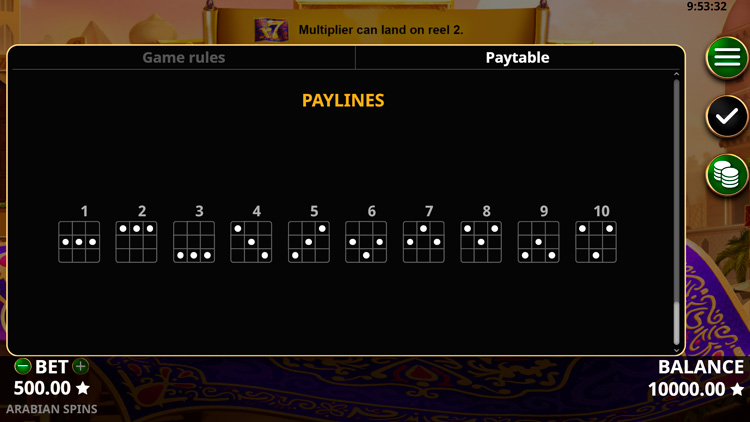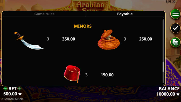 Таблица выплат Arabian Spins