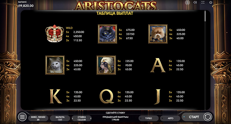 Таблица выплат Aristocats