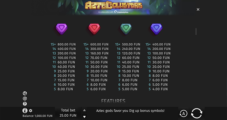 Таблица выплат Aztec Clusters