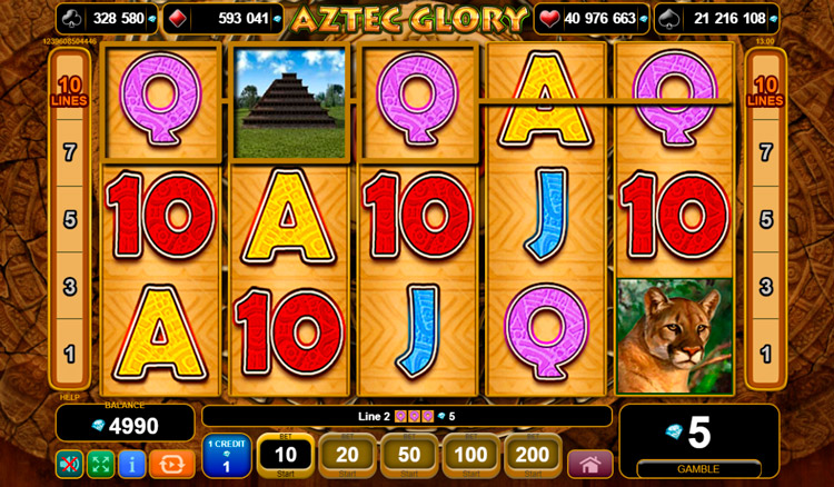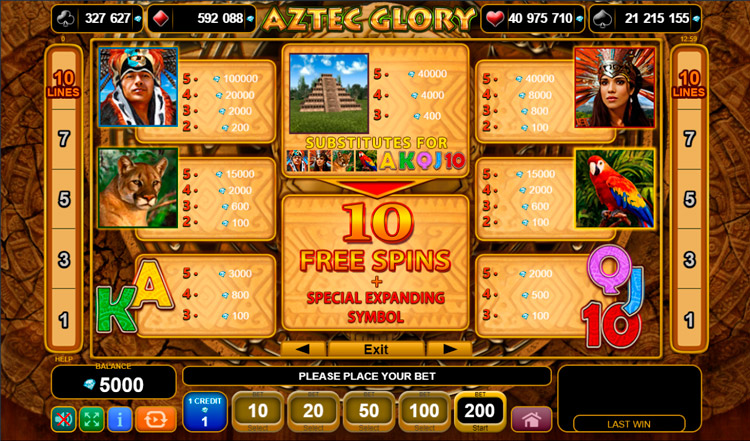 Таблица выплат Aztec Glory