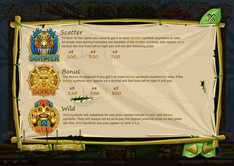 Таблица выплат Aztec Secrets