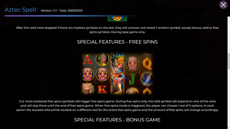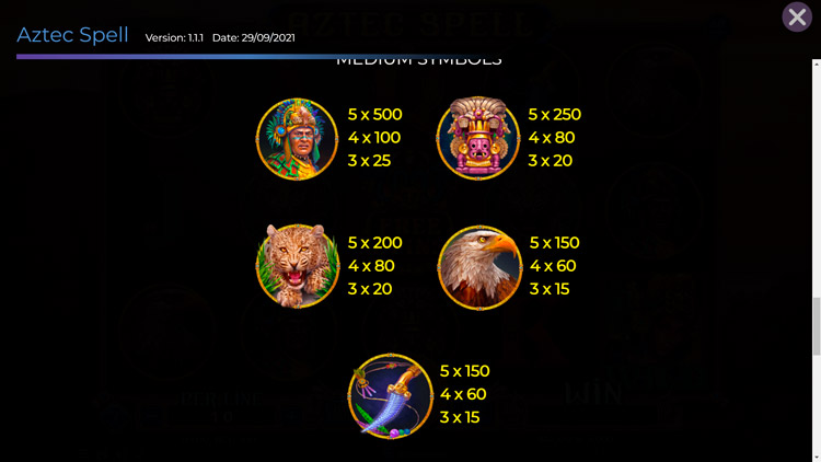 Таблица выплат Aztec Spell