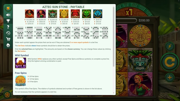 Таблица выплат Aztec Sun Stone