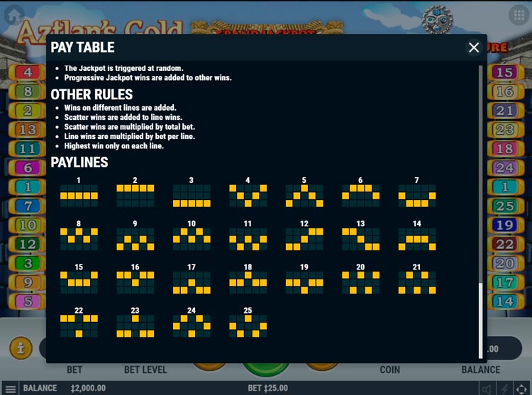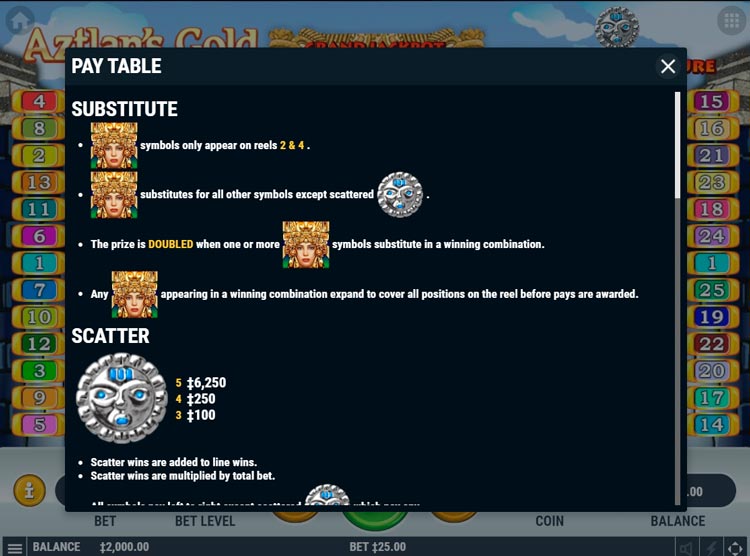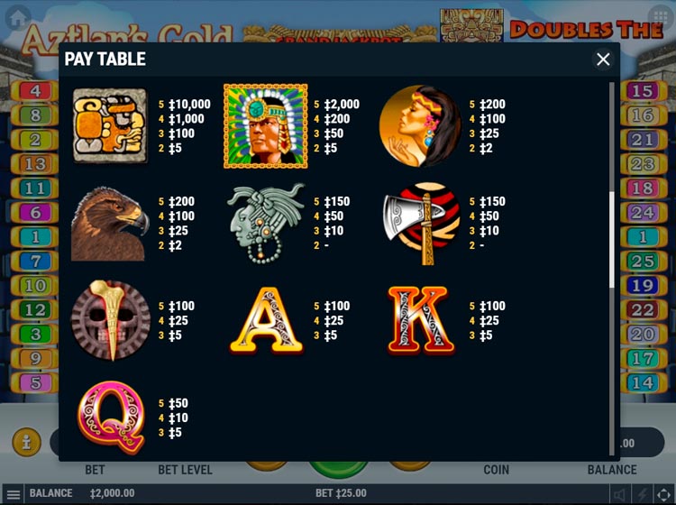 Таблица выплат Aztlan’s Gold