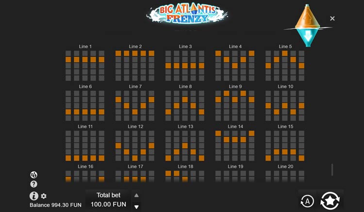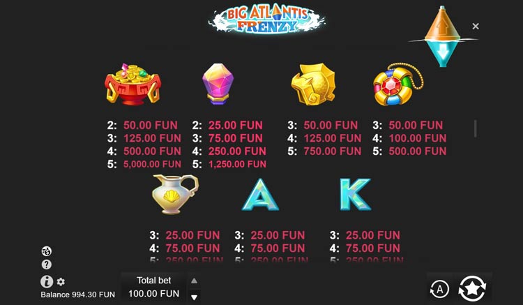 Таблица выплат Big Atlantis Frenzy