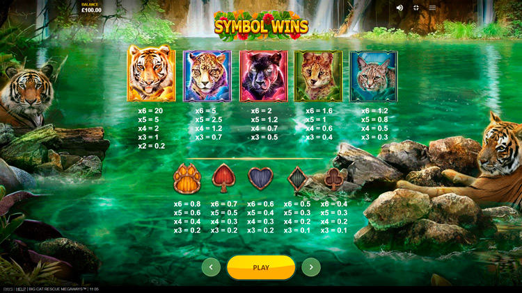 Таблица выплат Big Cat Rescue MegaWays