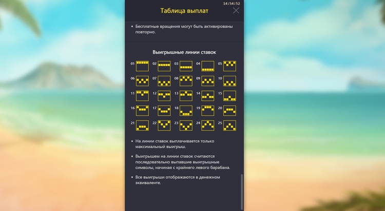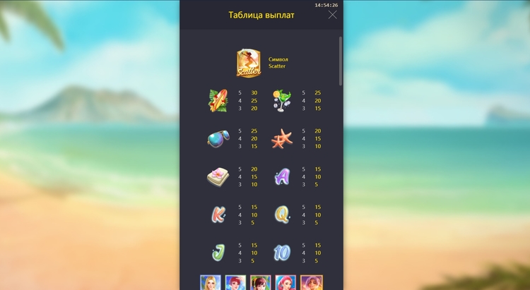 Таблица выплат Bikini Paradise
