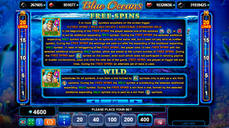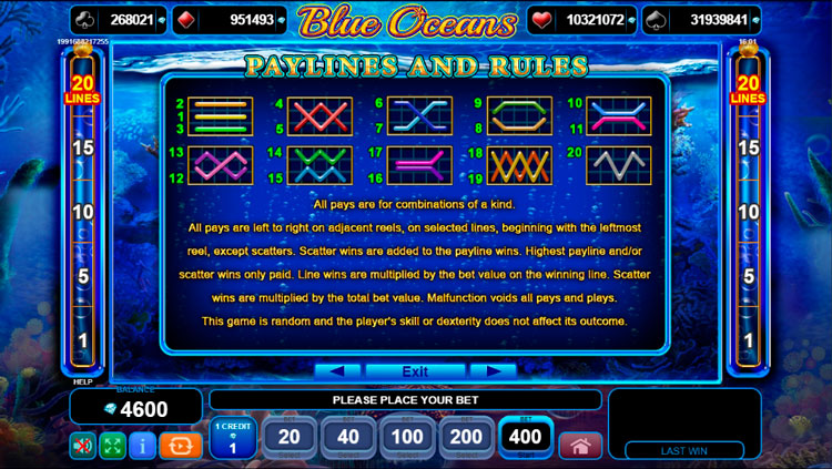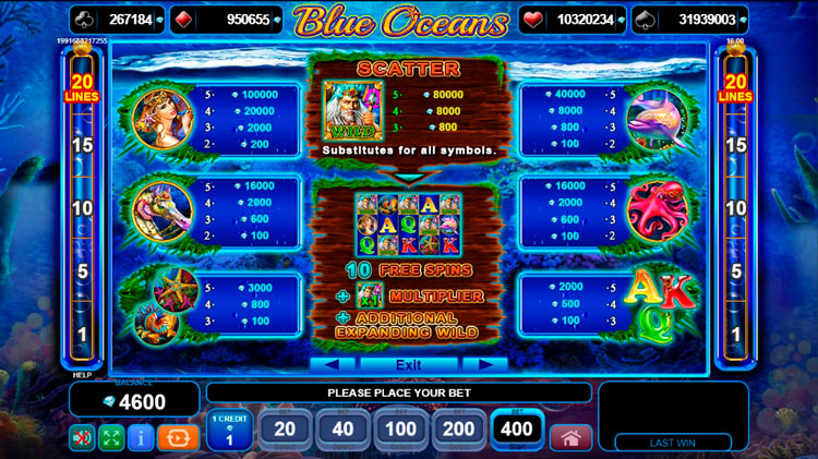 Таблица выплат Blue Oceans