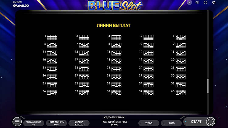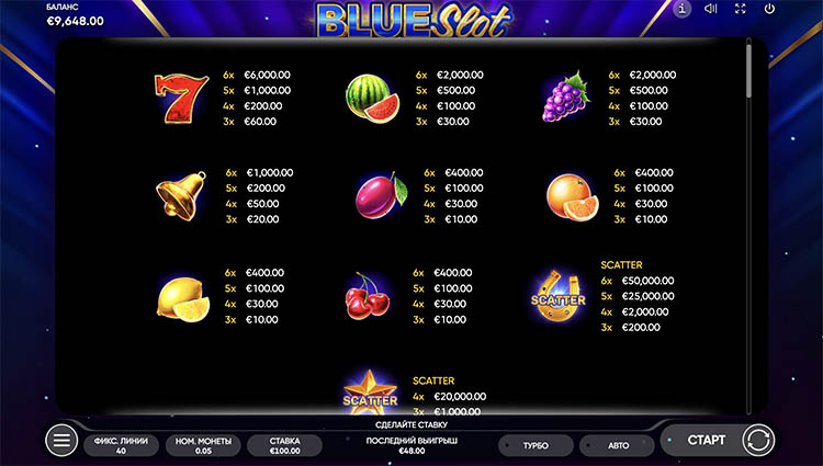 Таблица выплат Blue Slot