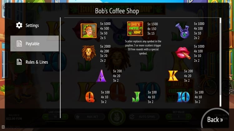 | Растаман (Wild) | 5 | 50 | 500 | 5000 |
