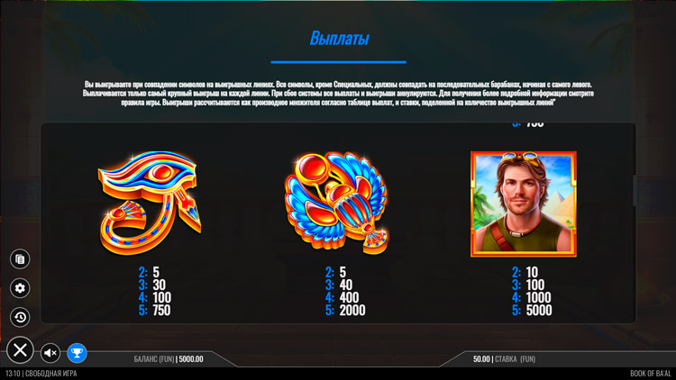 Таблица выплат Book of Ba’al