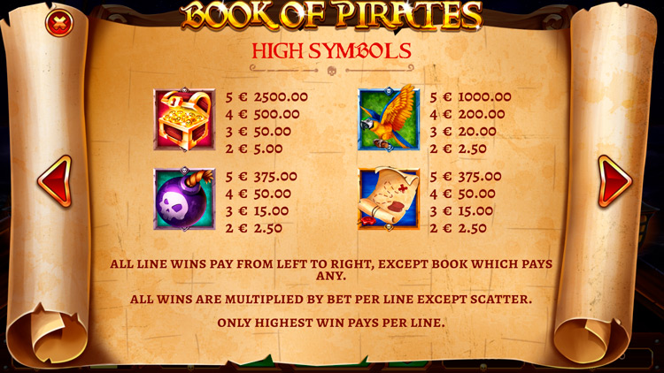 Таблица выплат Book Of Pirates