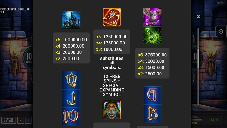 Таблица выплат Book Of Spells Deluxe