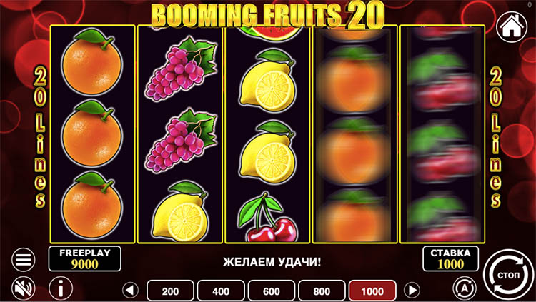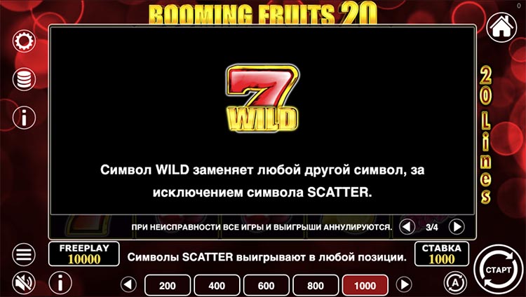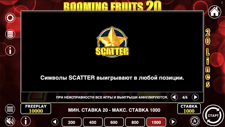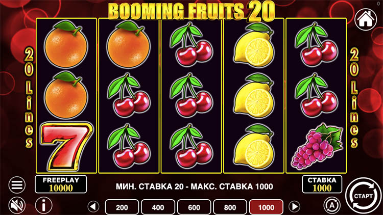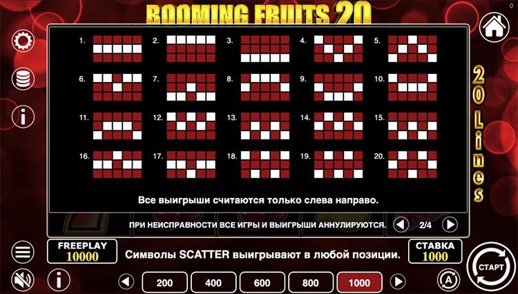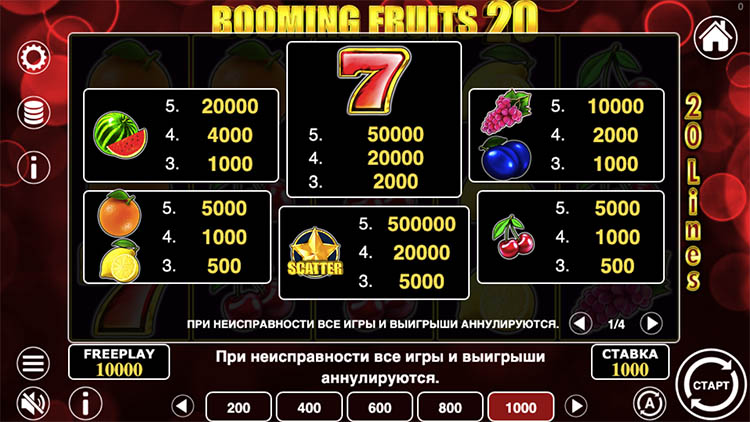 Таблица выплат Booming Fruits 20