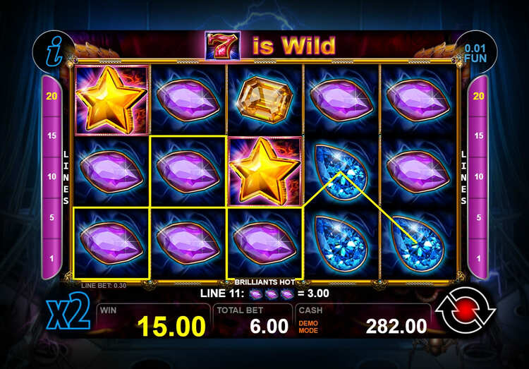 | Фиолетовый, Желтый, Синий бриллианты | 3 | 6 | 30 |