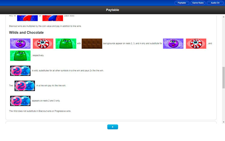 Таблица выплат Candy Bars