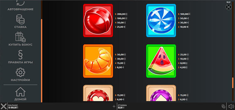 | Оранжевая конфета | 8 | 15 | 30 | 50 |