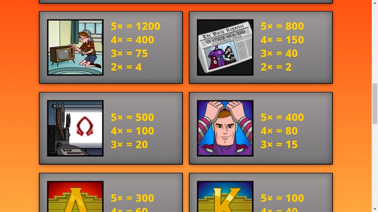 Таблица выплат Captain Shockwave