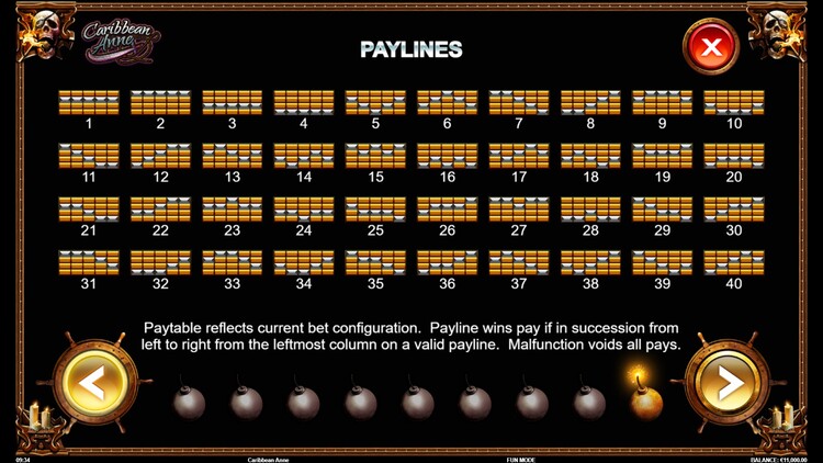 Таблица выплат Caribbean Anne