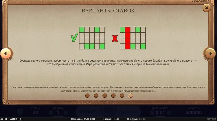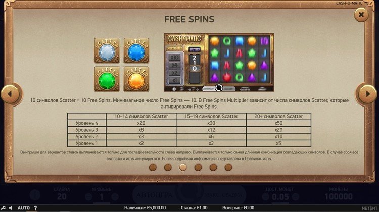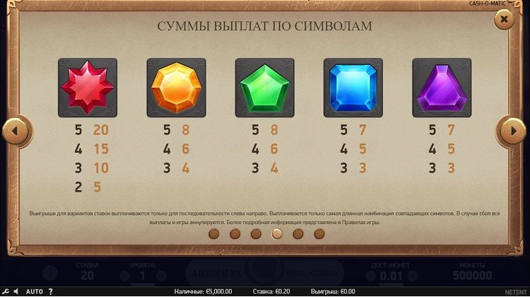 Таблица выплат Cash-O-Matic