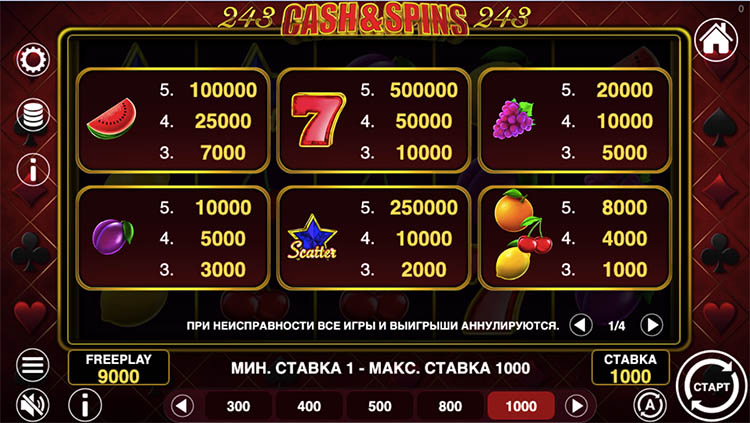 | Звезда (Scatter) | 2000 | 10 000 | 250 000 |
