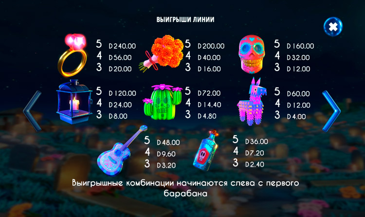 Таблица выплат Catrina: Amor Eterno