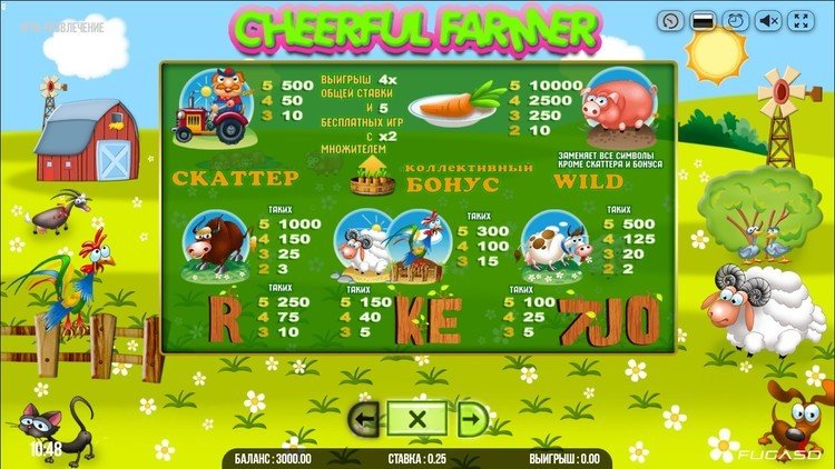 Таблица выплат Cheerful Farmer