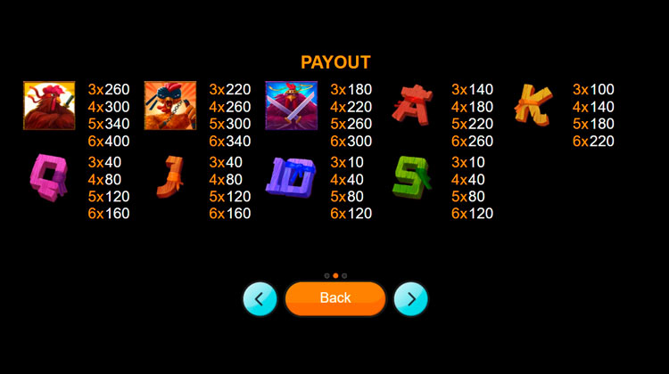 Таблица выплат Chicken Ninja